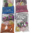 The toy pack is available in blue, orange and pink and contains a catnip play bag, 2 plastic balls with bells and 2 scrunch balls. The colour refers to the catnip bag.