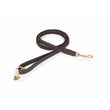 Plaited leather for distinctive style with an elegant twist. This beautifully finished leather dog lead features a swivel trigger clip to stop the lead becoming twisted. Flat leather handle, brass buckle and D-ring, Digby & Fox tag. Length: 110cm. Matching collar available.